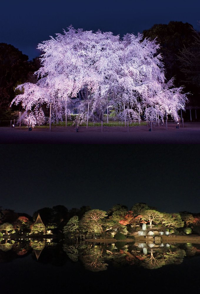(写真:六義園 春のライトアップ/秋のライトアップ